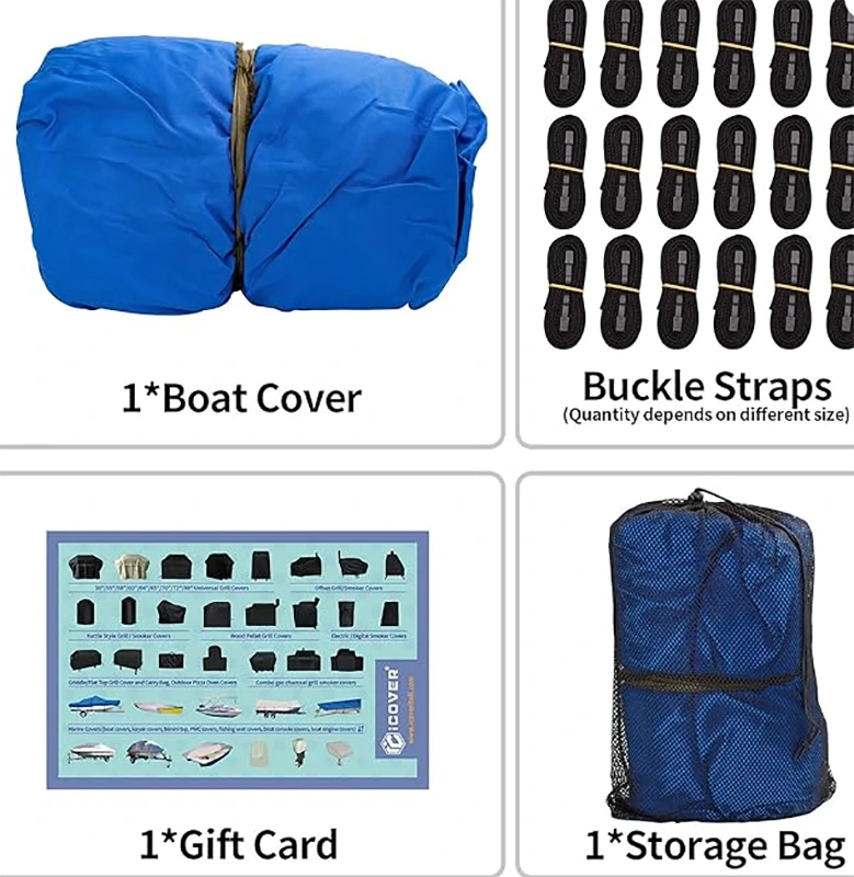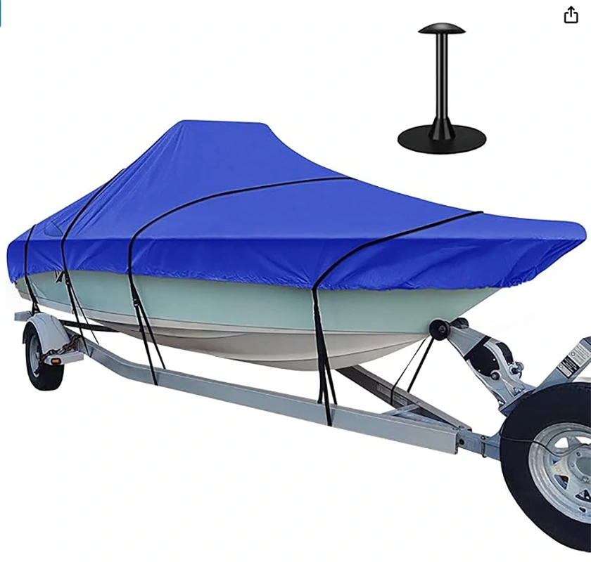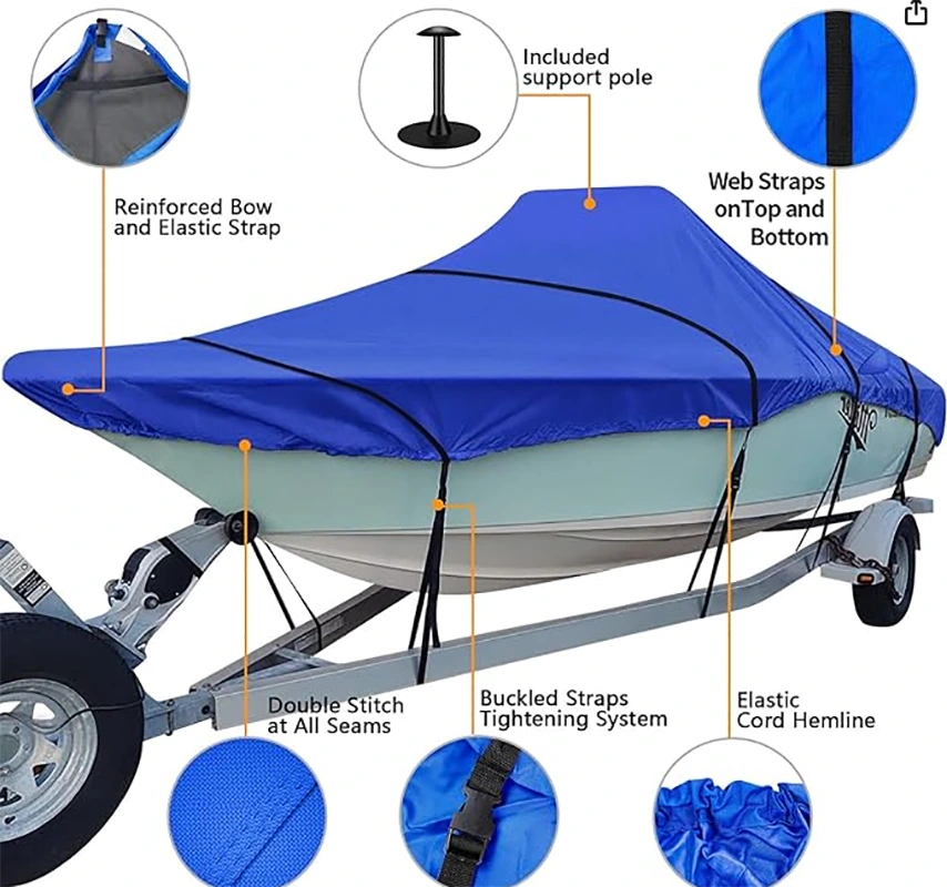שטראַל ברייט וואָטערפּרוף שיפל קאָווער יאַכט קאָווער, טריילעראַבאַל שיפל דעקן, 600 ד שווער פליכט שיפל דעקן פיץ V-כאַל צענטער קאַנסאָול שיפל 20ft-22ft לאנג און שטראַל ברייט אַרויף צו 116אין, ווינטשויב הייך אַרויף צו 30in, שיפל קאָווער שטיצן פלאָקן אַרייַנגערעכנט.
