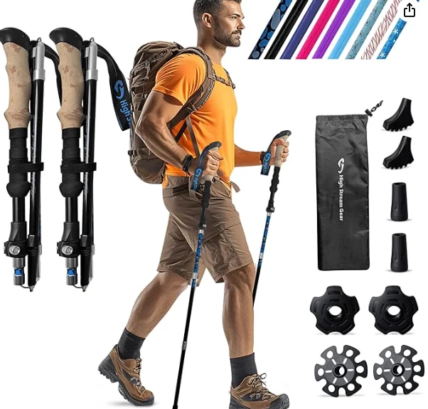 קאַלאַפּסאַבאַל נאָרדיק כייקינג פּאָאָל.פאָולד כיקינג פּויליש פֿאַר באַקקפּאַקקינג, עקסערסייזינג און טראַוואַלינג, שטעלן פון 2 אַלומינום נאָראַפּסאַבאַל טריקינג פּויליש