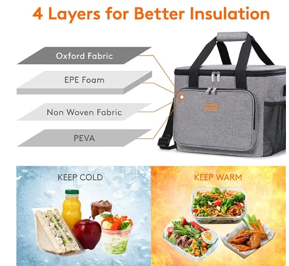 ינסאַלייטיד מאַכנ אַ פּיקניק זעקל, לאָנטש זעקל איז געמאכט פון ינסאַלייטיד מאַטעריאַל וואָס קענען האַלטן עסנוואַרג און טרינקען קיל אָדער וואַרעם פֿאַר מער ווי 5 שעה. אויסערדעם, די ינלענדיש ונטערשלאַק איז געמאכט פון עסנוואַרג פּעוואַ שטער אַזוי איר קענען שטעלן דיין עסנוואַרג אין די טאַש גלייַך אָן קיין זאָרג. די געבויט-אין 6 מם עפּע פּינע פּראָווידעס גרויס שוץ צו דיין קאַנטיינערז, עסן און טרינקען.