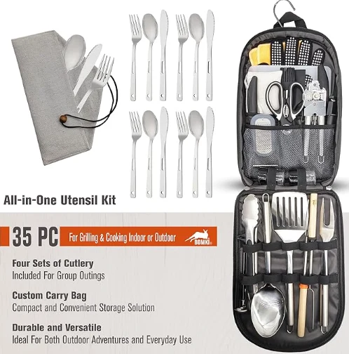 דרויסנדיק קעמפּינג קוקינג קוקווער סטאָרידזש באַגס דעם 35 פּיסי קעמפּינג, די יוטענסאַלז שטעלן פון די דרויסנדיק איז אַ גאַנץ לייזונג פֿאַר דיין דרויסנדיק קוקינג דאַרף. עס כולל אַ קעמפּינג קיך שטעלן און קעמפּינג מכשירים קוקינג שטעלן, אַלע ניטלי פּאַקט אין אַ מנהג זעקל מיט עקסטרע קונץ און צוויי צוריק פּאַקאַץ. דער גאַנג איז דיזיינד צו באַזאָרגן צו אַלע דיין קעמפּינג צו קאָכן עססענטיאַלס, אַזוי אַז עס איז אַ ינדיספּענסאַבאַל דערצו צו דיין קעמפּינג גאַנג